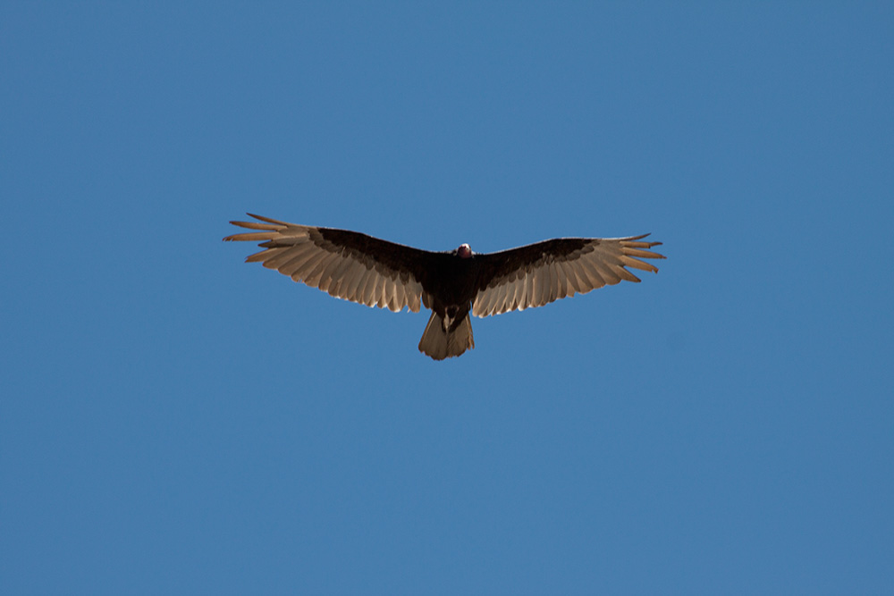 That particular buzzard got dive-bombed by two smaller birds back across the lake, above the bait and tackle shop. We had seen some nests there previously with babies, and when we got back over we realized that it was the two mother birds running off the much, much larger buzzards. Didn’t run us off though: